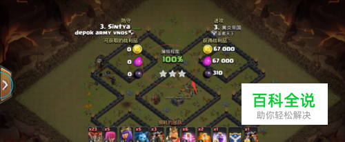部落战第一原则,先引对方援兵而杀之;2气球+1加速作为诱饵引出敌方援军,然后用女王、弓箭手和2亡灵加毒药灭之。