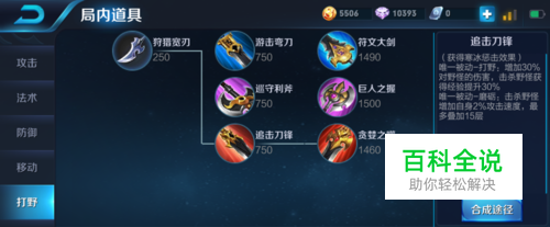 首先李白基本上是打野,又比较需要攻击速度,比较李白要平A来刷大招嘛,所以我们就出个攻击速度那个专属打野刀