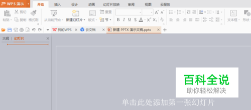 首先新建一个PPT,打开后点击第一页添加一张PPT,如下图所示。