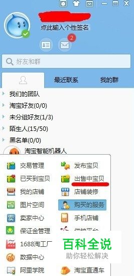 确定设置完之后回到左边菜单栏点击出售中的宝贝,进去。