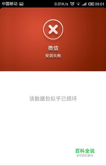 提示“微信安装失败 该数据包似乎已损坏”