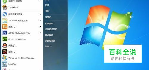 首先打开自己的电脑,在桌面左下角找到开始菜单,点击开始菜单,在弹出的窗口界面中找到控制面板,如图: