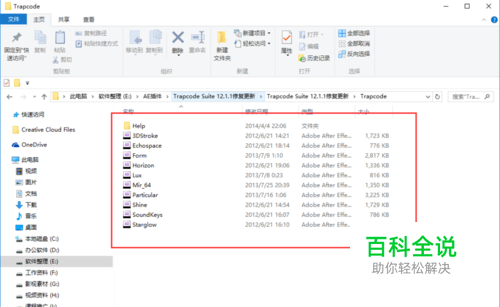 我都已经为大家打包整理好,大家只需要后面复制即可,我已经把10个插件都放在一个文件夹里面,命名文件名为Trapcode,这也是后期为大家方便安装。