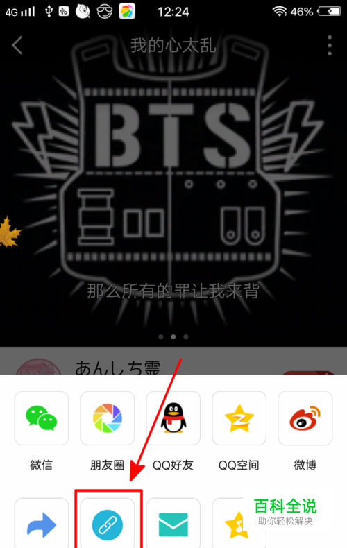 打开全民K歌找到你要提取的歌曲,点击最下方第三个分享图标,然后再点击“复制链接”。