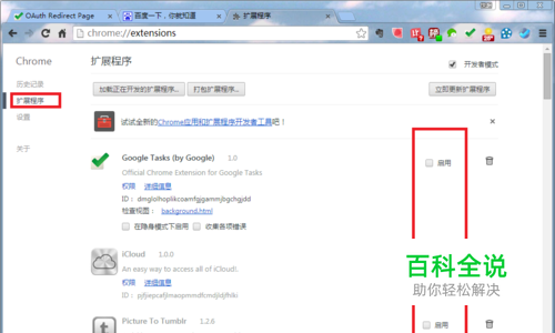 在设置面板中点击“扩展程序”,关闭所有启用插件。