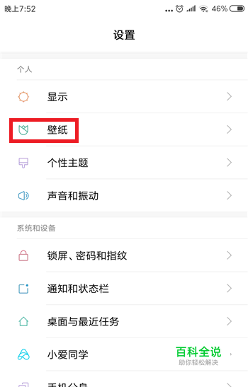 出现闪屏的导致原因有好几种,下面我们看看具体的原因以及相应的解决办法。第一种可能是我们使用一些壁纸导致的,先打开设置功能并找到【壁纸】功能,点击打开壁纸。