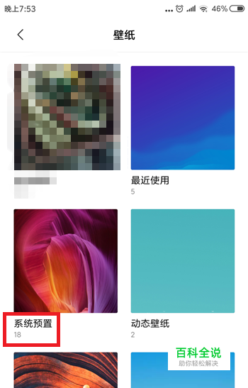 接下来在系统预置的壁纸里选择一个,然后点击【使用壁纸】,这样恢复默认的手机壁纸后看是否能解决闪屏的问题。
