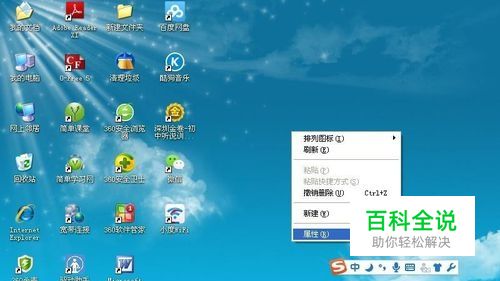 首先在桌面空白处单击右键,选择属性。