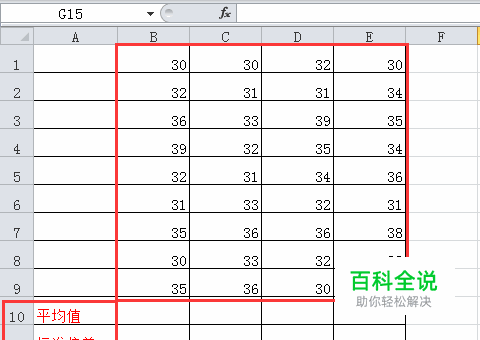 确定之后呢,会跳出对话框,这里注意,我们求标准偏差还是从 B1到B9,不包含B10,因为B10是平均值,没有问题之后,然后点击 确定,点了确定之后呢,标准偏差就计算出来了