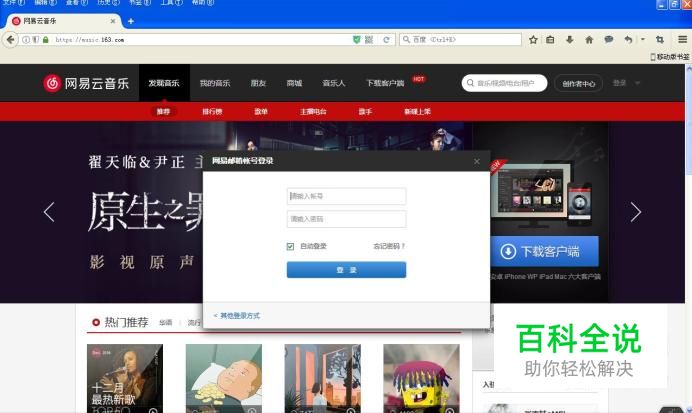打开火狐浏览器,在地址栏输入:music.163.com。是的,我们使用网页版网易云音乐。