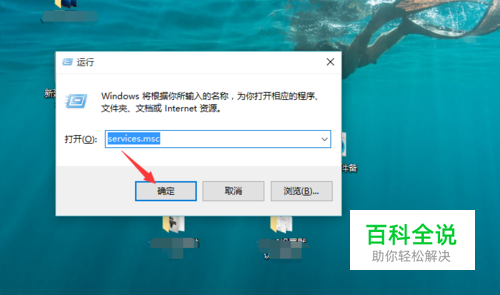 首先,按下快捷键 WIN键+R,打开【运行】,在运行中输入【services.msc】,然后点击【确定】。