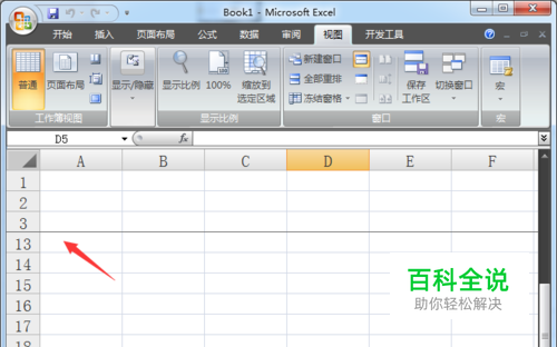 这时,就只能看到一条可移动的标线,移动到相应的位置,比如三行,最终实现的效果是冻结前三行。