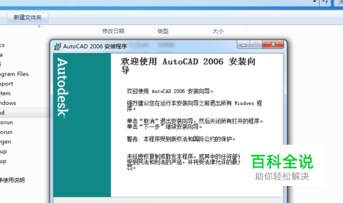 首先,先安装cad2006。点击“acad.exe”进行安装。点击下一步,在序列号框处填写“666-98989898”,然后一直点击下一步,完成安装。
