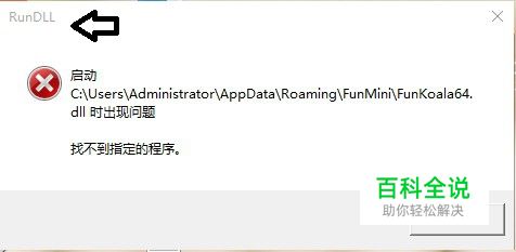 再看具体内容:启动C:\Users\Administrator\AppData\Roaming\FunMini\FunKoala64.dll时出现问题,找不到指定的程序。 这是在Administrator用户的文件中找不到软件的动态链文件了。