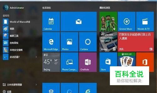 点击win10左下角的<开始>窗口键,如下图所示,在弹出的<开始屏幕>中选取get office选项,如果在开始屏幕中未发现,点开所有程序,在字母排序G下可以找到该程序。