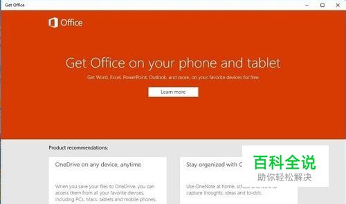 点击get office后出现以下窗口,居然是英文的,上面有两个推荐组件,one drive和one note,这些都被整合到在线office啦,one drive是win10缺省安装的,点击one note进行安装。