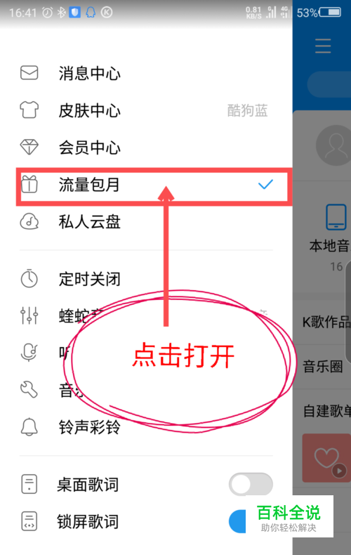 有大王卡,怎么查看酷狗音乐有没有开启免流量?