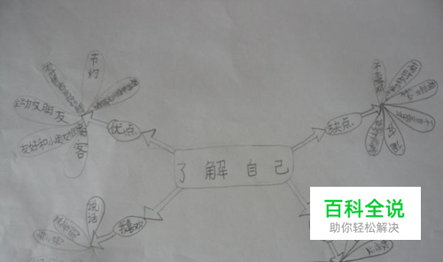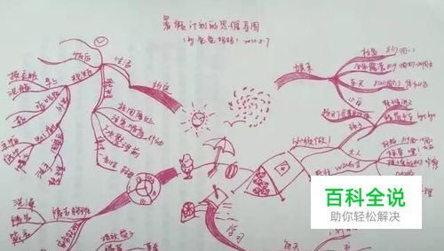 小朋友手绘的简单线条思维导图,色彩比较单一,页面构图比较混乱。