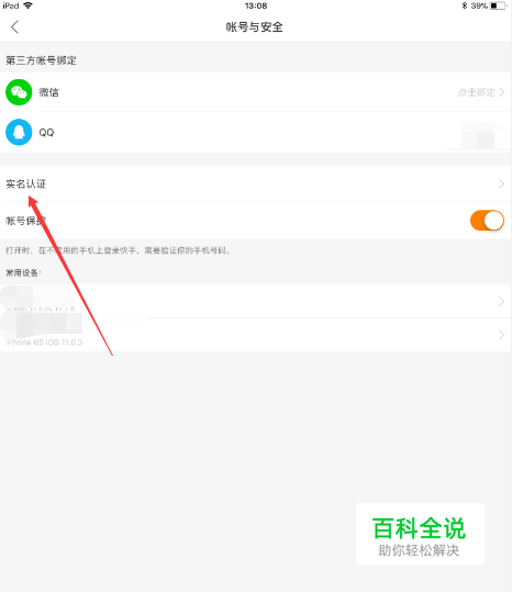 之后在【帐号与安全】页面会看到【实名认证】这个功能,接着点击它。