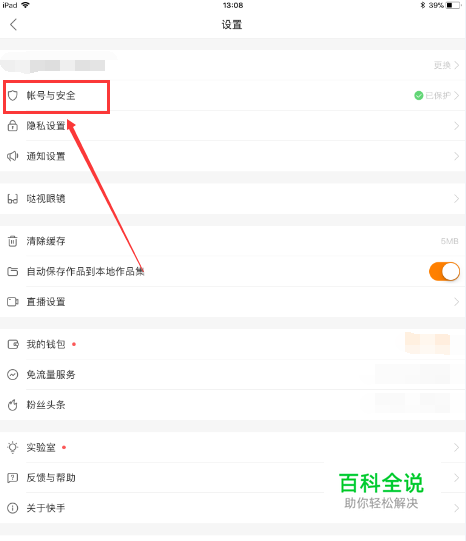 用户想要完成快手软件的实名认证,首先先进入到快手软件的【设置】页面,接着再点击【帐号与安全】这个功能。