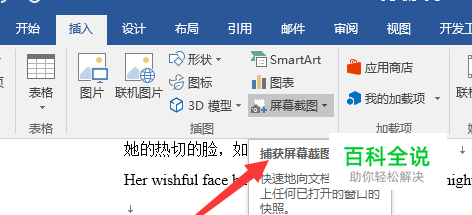 从插入菜单栏里我们会看到屏幕截图的功能。
