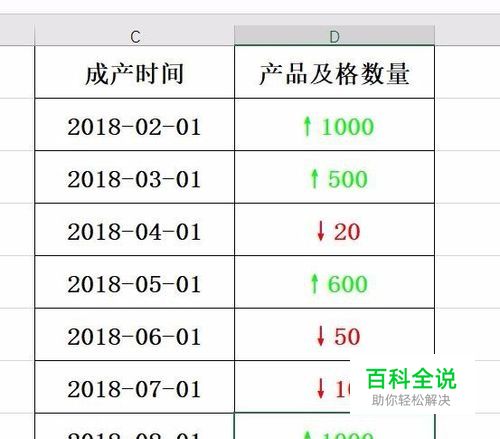 点击确定后,表格里的数据就分别标识升降箭头了,负数为红色箭头,正数为绿色箭头,如图5