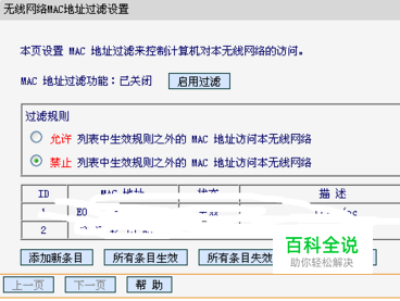 然后选上“禁止 列表中生效规则之外的 MAC 地址访问本无线网络”