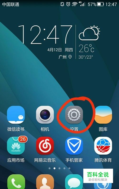 首先打开手机,找到设置。如图红圈所示: