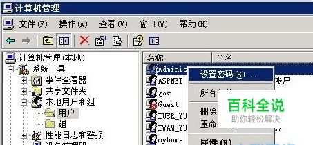 在 Administrator 账户上点击右键,选择“修改密码”设置您的新密码。