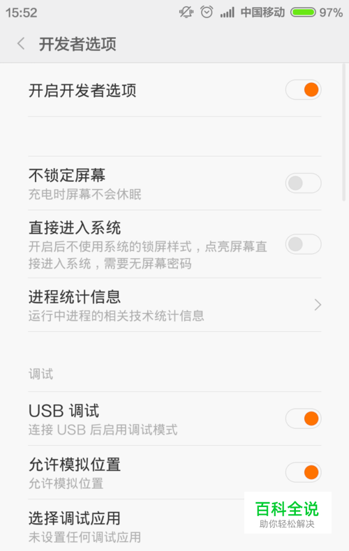接下来,触摸该选项设置,然后将打开开发者选项功能设置页面,我们点击会看到自己已经开启了开发者选项功能,我们点击将该功能关闭。