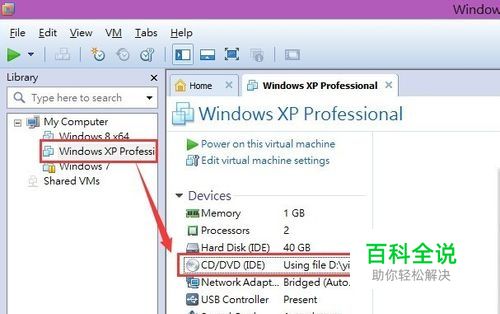 在导航栏点击需要加载光盘文件的虚拟机,在右边双击虚拟机光驱设备,打开虚拟机配置设置窗口。