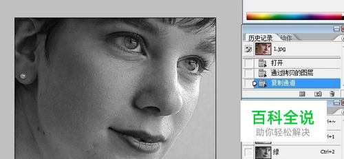 进入通道处,鼠标左键单击绿色通道一下。再对绿色通道单击一下鼠标右键,点击复制图层。