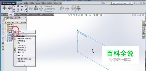 画一条中心线 1.选择最上面一条边使之平行 2.裁剪草图两边, 3.设定弧长5