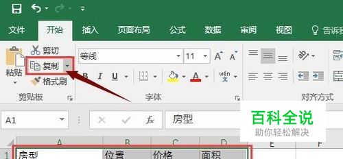 打开excel,选择单元格区域,然后点击复制。