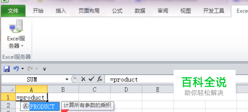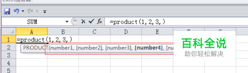 打开Excel,输入公式“=product”,可以看到它的公式说明。
