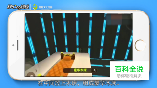 首先使用硅石台阶在地面上围出一个长方形床边,在中间放上木床,组成豪华木床。