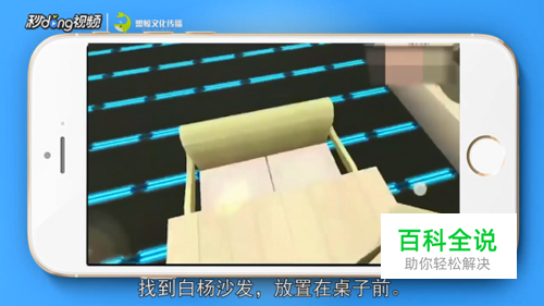 点击白杨木台阶,将两个白杨木对接成桌子,找到白杨沙发,放在桌子前。