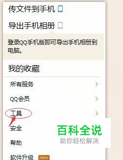 方法一: 在QQ主界面,点击底部的“三”样式的图标,选择工具。
