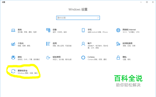 点击Windows设置里面的更新和安全