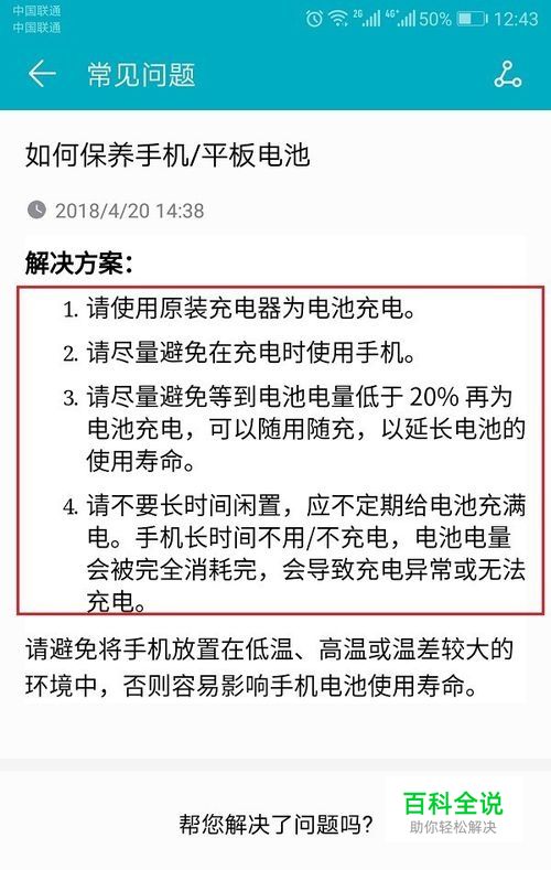 第一步我们首先知道手机电池是有寿命的,用久了,电池会不耐用,延长电池的使用寿命主要使用原装充电器,避免在充电时使用手机,不要电量低于20%以后再充电,不要长时间不用手机,如下图所示:
