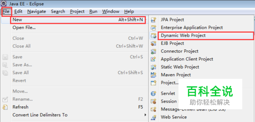 打开Eclipse,然后点击File --- New --- Dynamic Web Project (动态Web项目)。