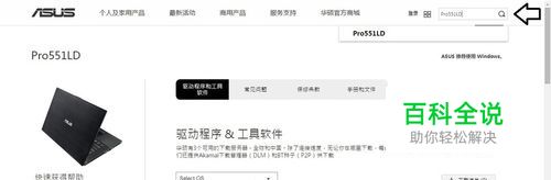 然后,点选Select OS(选择操作系统)右边的小箭头▼选择查看该款笔记本电脑适合什么操作系统。看这款Pro551LD型号的笔记本电脑最低只支持64位的Windows 7 操作系统(不支持的操作系统就没有设备的驱动程序)。