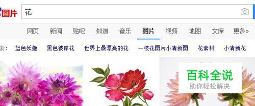 打开浏览器,输入示例——花,我们使用花的系列图片来做示范。