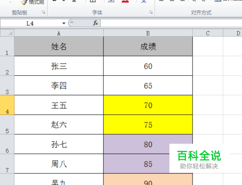 筛选后,如果想查看所有人的成绩,点击“成绩”右下方的漏斗(漏斗表示筛选状态)--“按颜色筛选”--去掉颜色前面的对勾“√”即可,如下图