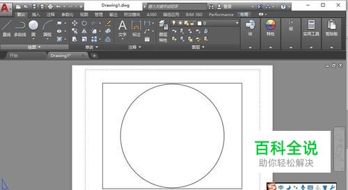 为了加快操作速度,我们建立一张最简单的图纸,在空图的模型空间画一个圆,然后切换到布局空间,布局空间默认有一个视口,如图所示。