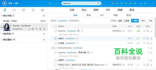 在左侧播放列表,找到该歌曲的k歌选项,进入k歌界面。见下图