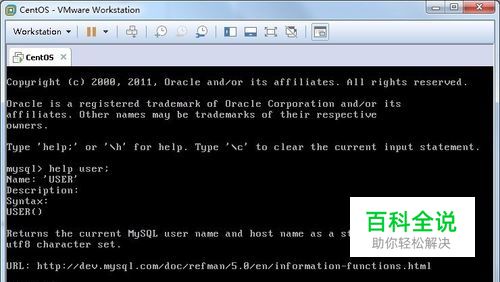 这里我们要介绍一个函数。user(),要说明一点的是,它是一个函数,不是SQL语句的一部分(意味着到其他数据库中是无法使用的)。 我们可以help user得到这个函数的帮助。