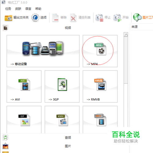 选择一个视频的格式,以mp4格式为例