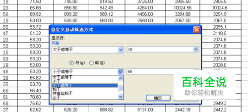 例如我将筛选条件设置为“大于等于18”“与”“小于等于60”,点击确定后,系统自动的就筛选了18岁-60岁的人员名单了。 非常方便。