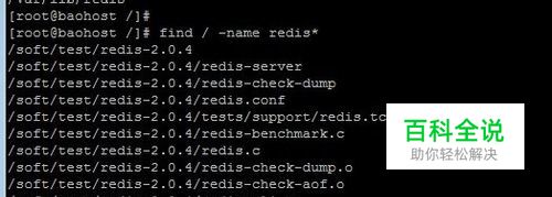 用find命令查找文件,比如从根目录下才是查找redis文件 # find / -name redis --查找具体某个文件 # find / -name redis* --加上通配符*号,则表示查找以redis开头的文件